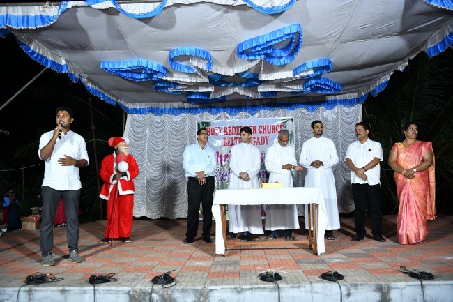 After the mass Christmas program was organised by the ICYM members. Mr Rakshith Shivaram president of Best foundation was the chief guest for the program. Parish Priest, Principal of Holy Redeemer Eng Med School, Dn Johnson, Vice president, secretary and co-ordinator of parish Pastoral council were present on dias..children performed christmas Tableau. Cake draw and Housi Housi were conducted by ICYM member. Kuswar was distributed to all the parishioners who were gathered for the program.