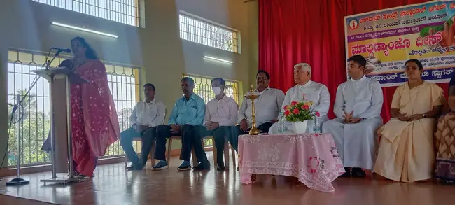 ಅಯೋಗ್ ಸಂಯೋಜಕಿ ಪೌಲಿನ್ ರೇಗೊ ನ್ ವೇದಿ ಸಯ್ರ್ಯಾಂಕ್ ತಶೆಂಚ್ ಸರ್ವಾಂಕ್ ಮೊಗಾನ್ ಸ್ಟಾಗತ್ ಕೆಲೊ. ವಿಗಾರ್ ಬಾಪಾಂನಿ ದಿವೊ ಪೆಟಂವ್ಚಾ ಮುಕಾಂತ್ರ್ ಕಾರ್ಯಕ್ರಮ್ ಉದ್ಘಾಟನ್ ಕೆಲೆಂ.