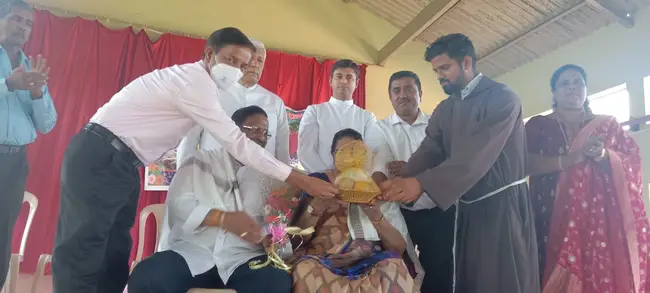 ಉಪ್ರಾಂತ್ ಶ್ರೀಮತಿ ಆಪೆೊಲಿನ್ ಡಿ ಸೋಜಾ ಆಪ್ಲ್ಯಾ ಜಿಣಿಯೆಚಿಂ ಭೊಗ್ಣಾಂ ವಾಂಟನ್ ಘೆತ್ಲಿಂ ಆನಿ ಮಾಲ್ಗಡ್ಯಾಂಕ್ ಶುಭಾಶಯ್ ಪಾಟಯ್ಲೆ.